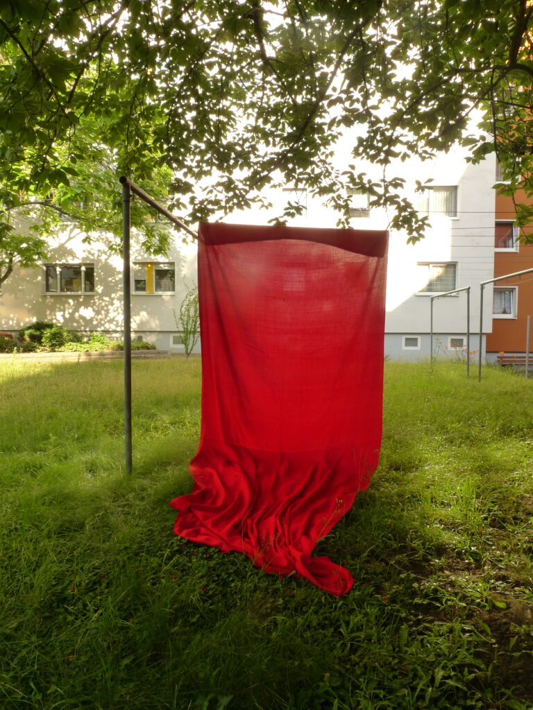 A series of interventions with red flags, produced in the GDR, around my hometown Halle, in the summer of 2020. To be continued…